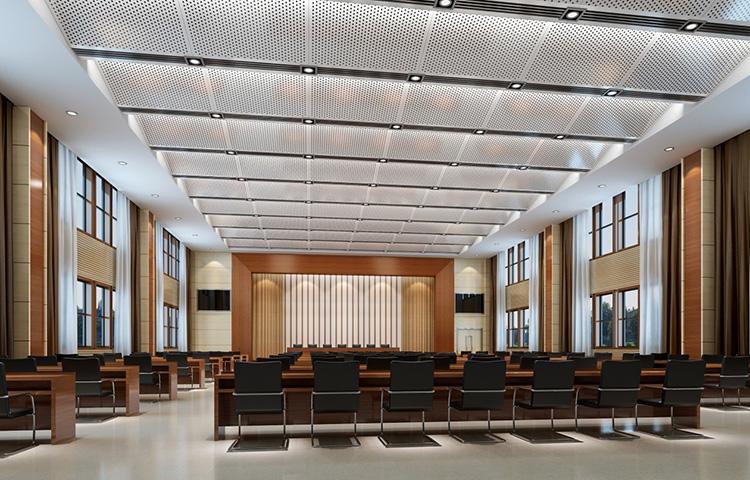 會議室音頻系統由信號源(節目播放設備)部分、控制及處理(調音臺及各種周邊設備等)部分、擴音(功率放大器及揚聲器)部分以及信號記錄部分等組成。節目播放設備基本上均為數字視頻信號傳輸設備使用,根據目前信號載體情況的不同,配備超窄邊液晶拼接顯示單元、嵌入式高清圖像拼接器、大屏拼接控制軟件。擴音部分則主要由功率放大器以及揚聲器組成,需要根據會議室的具體建筑結構、聲學處理情況以及功能要求選擇設備型號、數量以及布局方式等。
