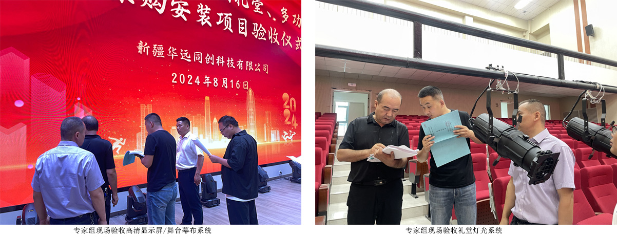 2024年8月16日,由新疆華遠同創科技有限公司承建的巴州衛校新校區一期禮堂、3間多功能廳設備采購安裝項目,經過驗收流程,通過了竣工驗收!本次驗收專家組由新疆巴音郭楞蒙古自治州衛生學校、新疆科技學院等單位的領導及專家共同組成。驗收組通過聽取匯報、現場察看以及逐一核對項目資料等方式,在充分討論和實地審核的基礎上,認為我方交付的項目的質量、舞臺機械升降、視聽效果等各個系統達到了設計標準和要求,符合使用需求,一致同意通過驗收!
