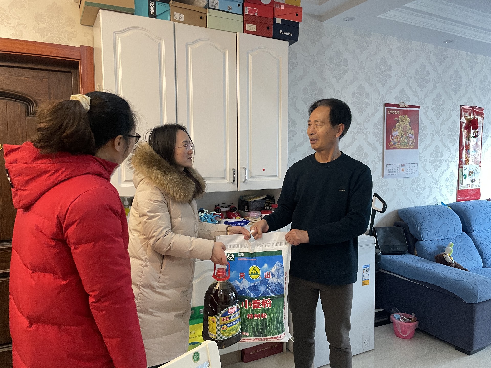 慰問現場,楊長福總經理親自帶隊,和社區工作人員將慰問品送到警務站一線民警手中,對他們長期扎根一線,保護人民群眾生命財產安全表達了誠摯的感謝。隨后,社區人員和公司代表一同將米面油等慰問物資,分別送到5位退伍軍人家里,并與他們交流生活近況,叮囑他們保重身體。