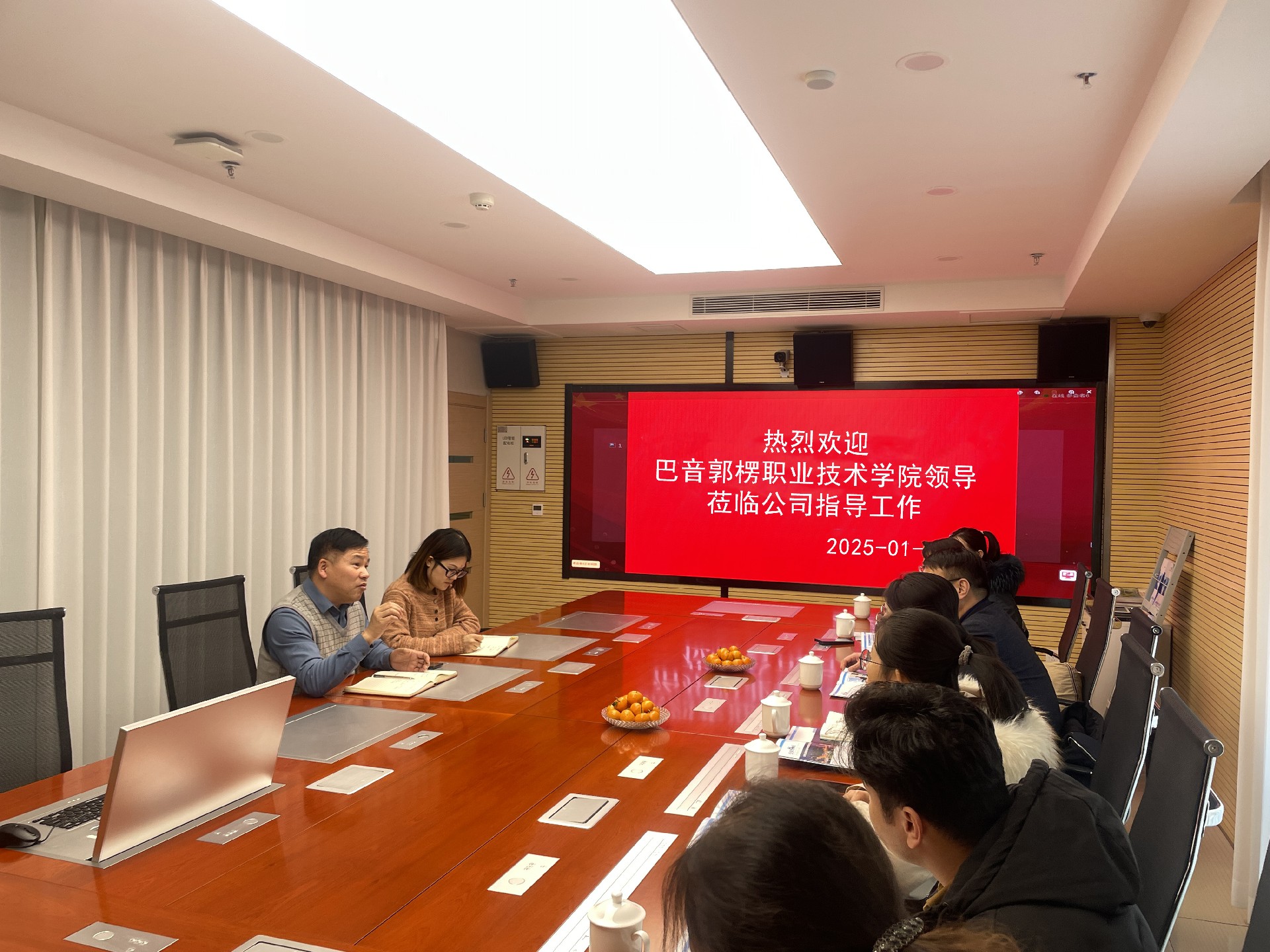 匡博院長介紹了巴音學院專業建設、學科布局和學生情況,表達了與我司建立校企合作關系的愿望。他們希望雙方能夠攜手,為學生提供實習和就業機會,同時邀請我司技術人才走進校園,為學生授課,增強他們的實踐能力和職業素養。